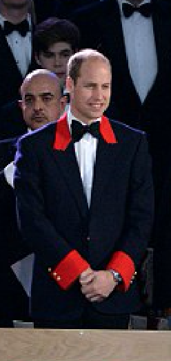 The Royal men, including the Dukes of Edinburgh and Cambridge, and Prince Harry wore the red trimmed dinner jackets of the Windsor Uniform. The other men wore Black Tie.