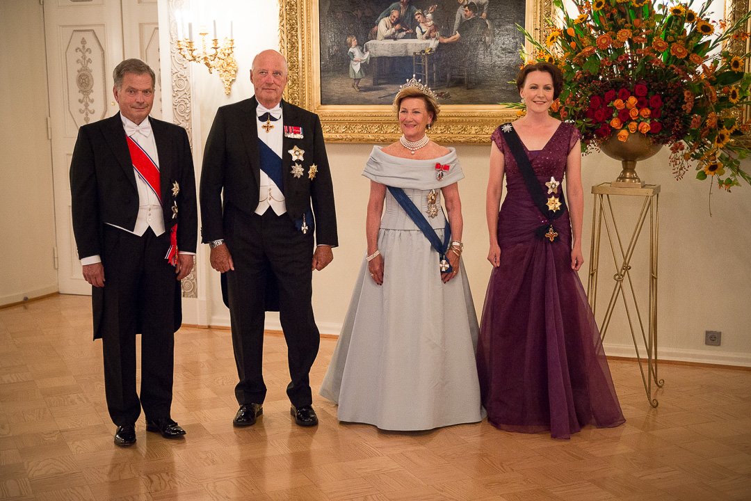 In the evening, President Niinistö held a State Banquet in Honour of their Norwegian guests. Both King Harald and President Niinistö made speeches. Queen Sonja wore a grey gown with pearls and the full version of Queen Maud’s Pearl and Diamond Tiara. First Lady Jenni Haukio wore an aubergine gown with a diamond star brooch. Both men wore white tie.