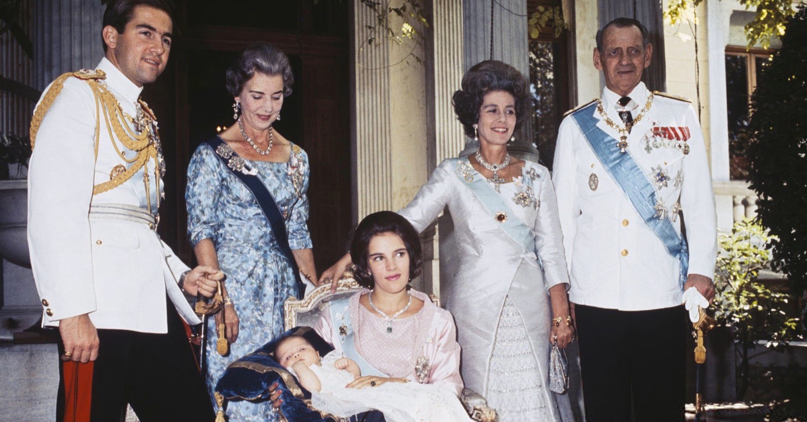 King Constantine II of Greece (father) and Queen Ingrid of Denmark (maternal grandmother, in her Diamond Parure)