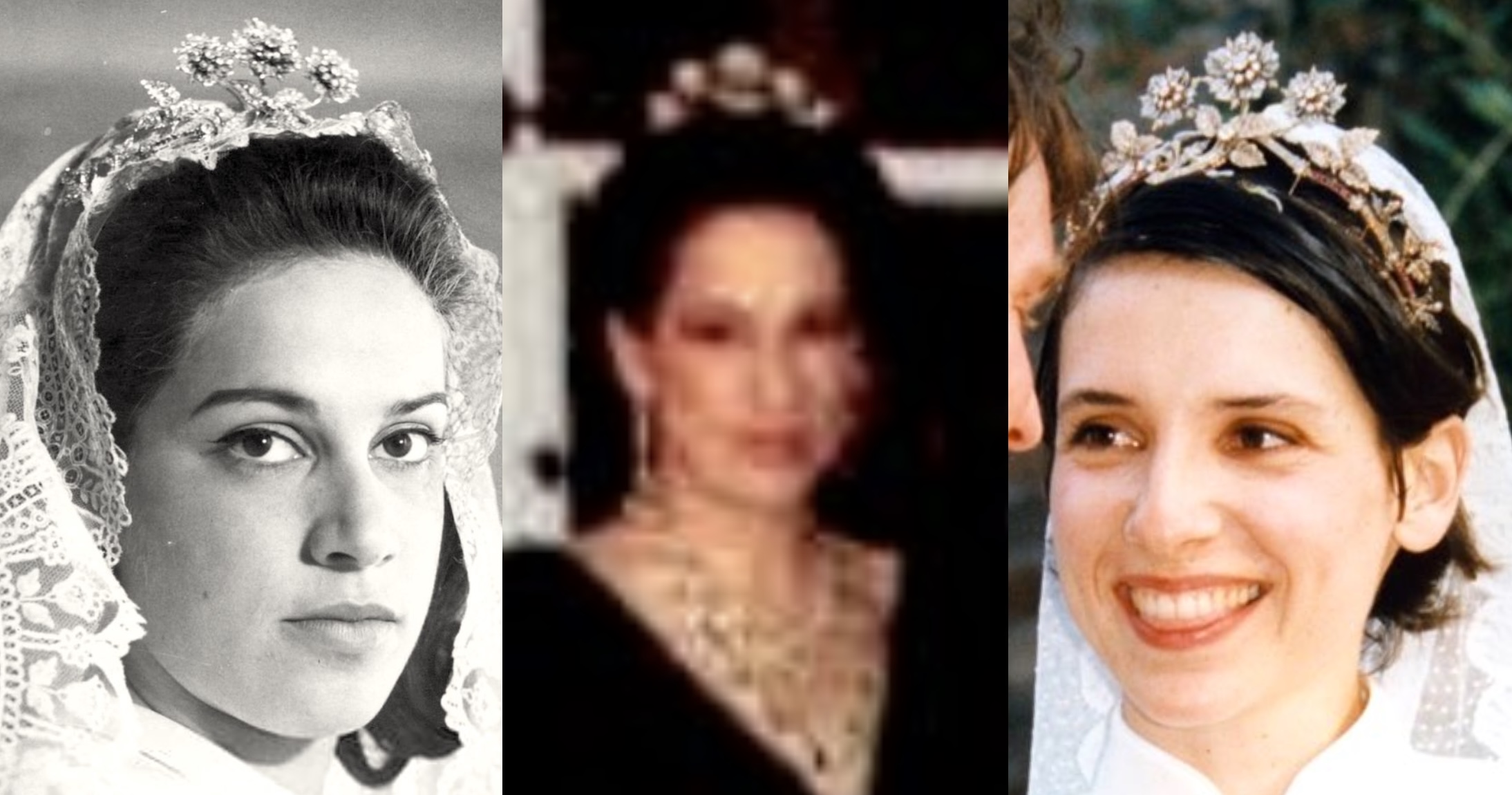 The first known appearance of the Greek diamond floral tiara came at the wedding of the couple, when the bride, Marina Karella, wore the piece for the ceremony at the Royal Palace of Athens. Since there are no pictures of Prince Michael’s late mother wearing similar jewels and it was the first time the tiara had been seen, it is suspected the piece was a new purchase.