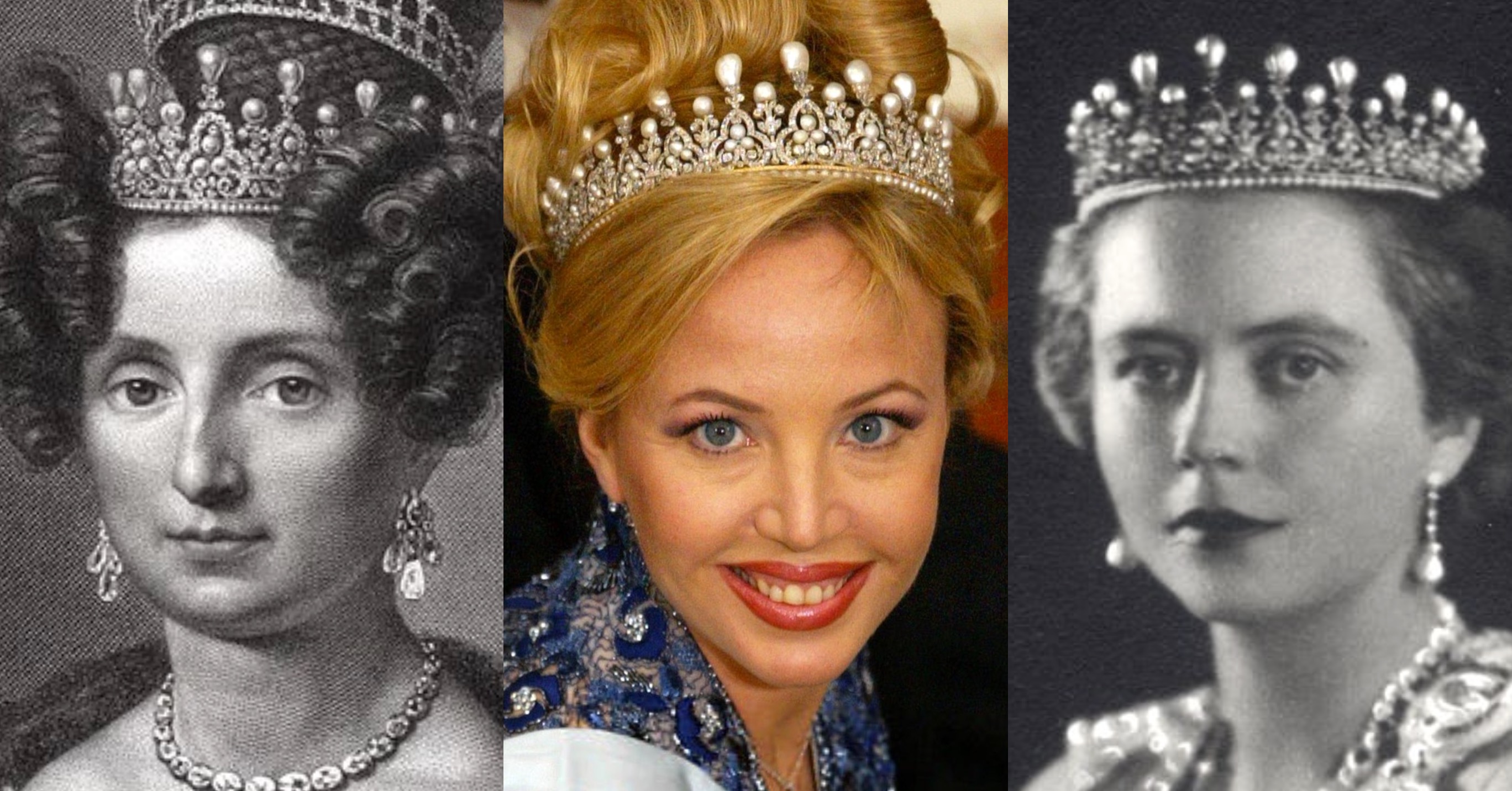 Made for Princess Maria Anna Carolina of Saxony around her 1817 to the Grand Duke of Tuscany, the Tiara passed to her husband’s second wife, Princess Maria Antonia of the Two Sicilies, and was inherited by their daughter, Archduchess Maria Isabella and passed down her Bourbon-Two Sicilies descendants until Princess Lucia of Bourbon-Two Sicilies, who was married to Prince Eugenio of Savoy, Duke of Ancona. The Tiara was loaned to her sister-in-law, Princess Lydia d’Arenberg, the Duchess of Genoa, who wore the Ancona Tiara in a series of Official Portraits. After the abolition of the Italian Monarchy, the Prince Eugenio and Princess Lucia relocated to Brazil, and a few years after his death, in 1999, she sold the Ancona Tiara at auction.