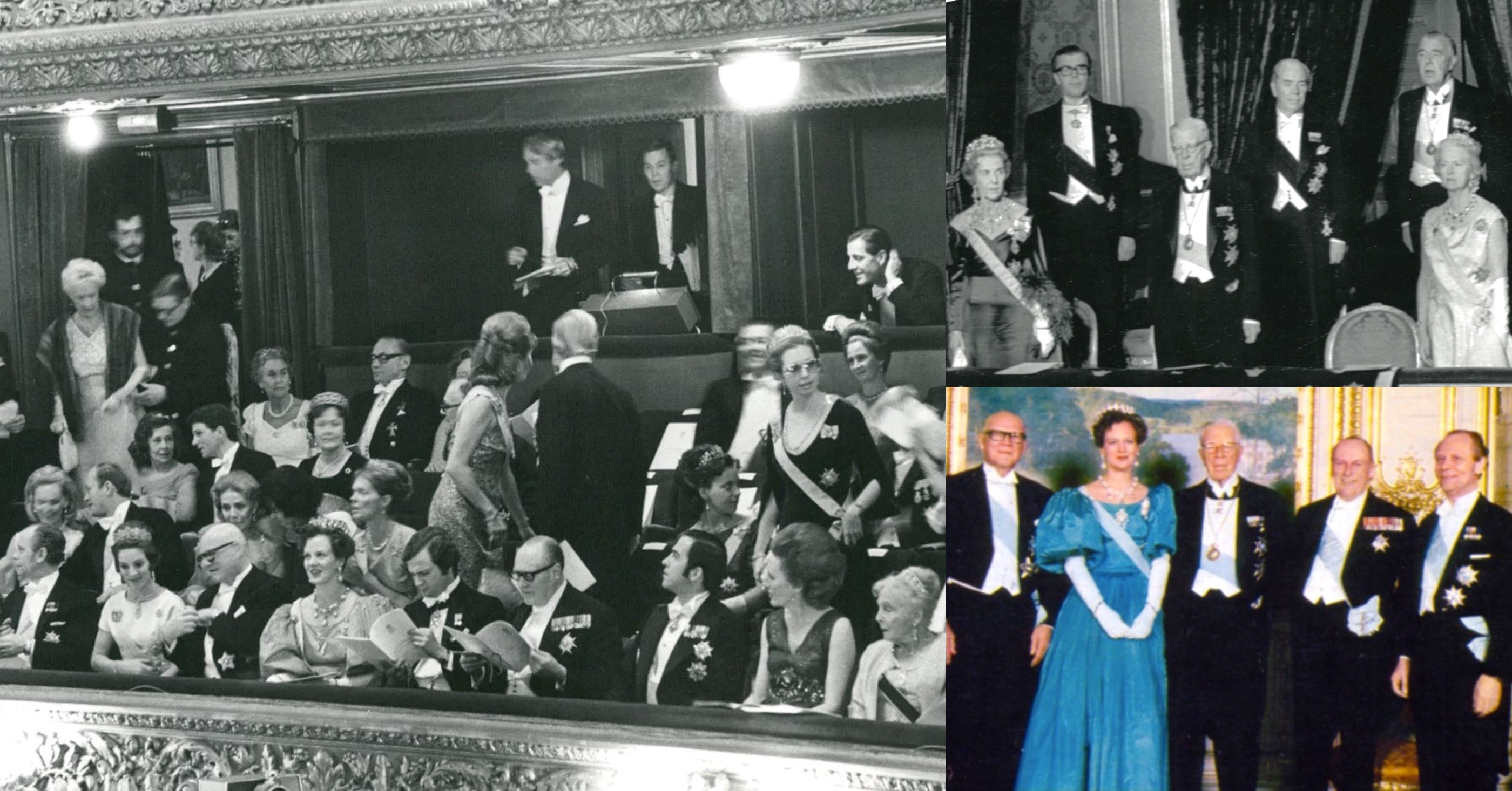 King Gustaf VI Adolf of Sweden’s glittering 90th birthday Banquet at the Royal Palace of Stockholm on this day in 1972, followed by a Reception at the Stockholm City Hall. Royal guests included King Olav V of Norway (cousin, wearing the Order of the Seraphim), Queen Margrethe II (granddaughter, in the Pearl Poiré Tiara and the Order of the Seraphim) and Prince Henrik of Denmark (grandson-law, wearing the Order of the Seraphim), King Constantine II (grandson-law, in the Order of the Seraphim) and Queen Anne-Marie of the Hellenes (granddaughter, wearing the Khedive of Egypt Tiara and the Order of the Redeemer), and Princess Benedikte (granddaughter, wearing her Floral Tiara) alongside Crown Prince Carl Gustaf (grandson), Prince Bertil (son) and Lilian Craig (in her Laurel Wreath Tiara), Princess Margretha (granddaughter, wearing the Aquamarine Kokoshnik Tiara), Princess Desiree (granddaughter, in the Connaught Diamond Tiara), Princess Birgitta (granddaughter, wearing her Pearl Circle Tiara), and Princess Christina (granddaughter, in the Baden Fringe Tiara).