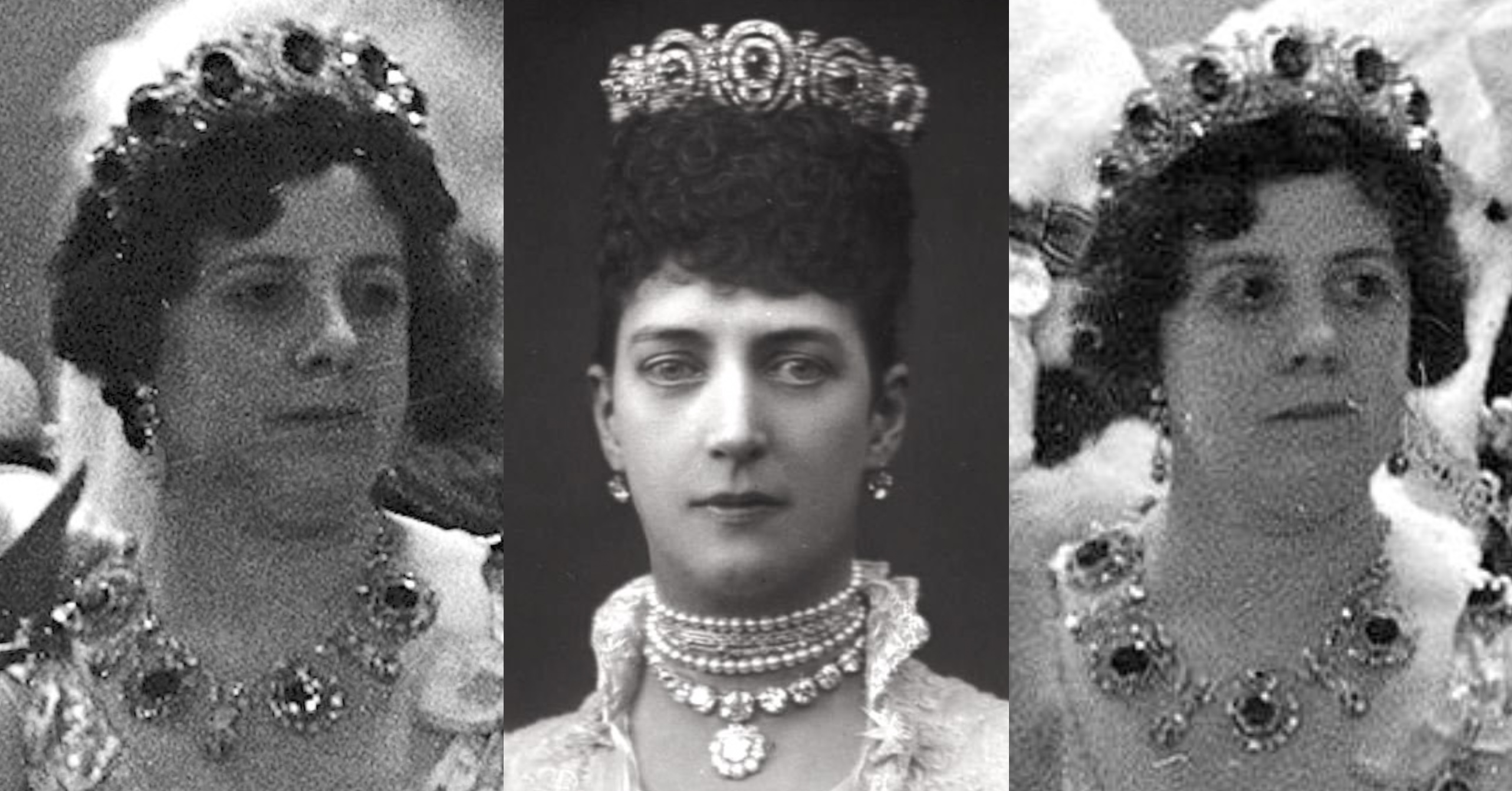 The following year, the Princess of Wales put sugarloaf-cabochon sapphires, a Silver Wedding Gift from the Tsar, into her Amethyst Tiara for the Wedding of her daughter, Princess Louise of Wales, and the Duke of Fife (also revealed by Beth).