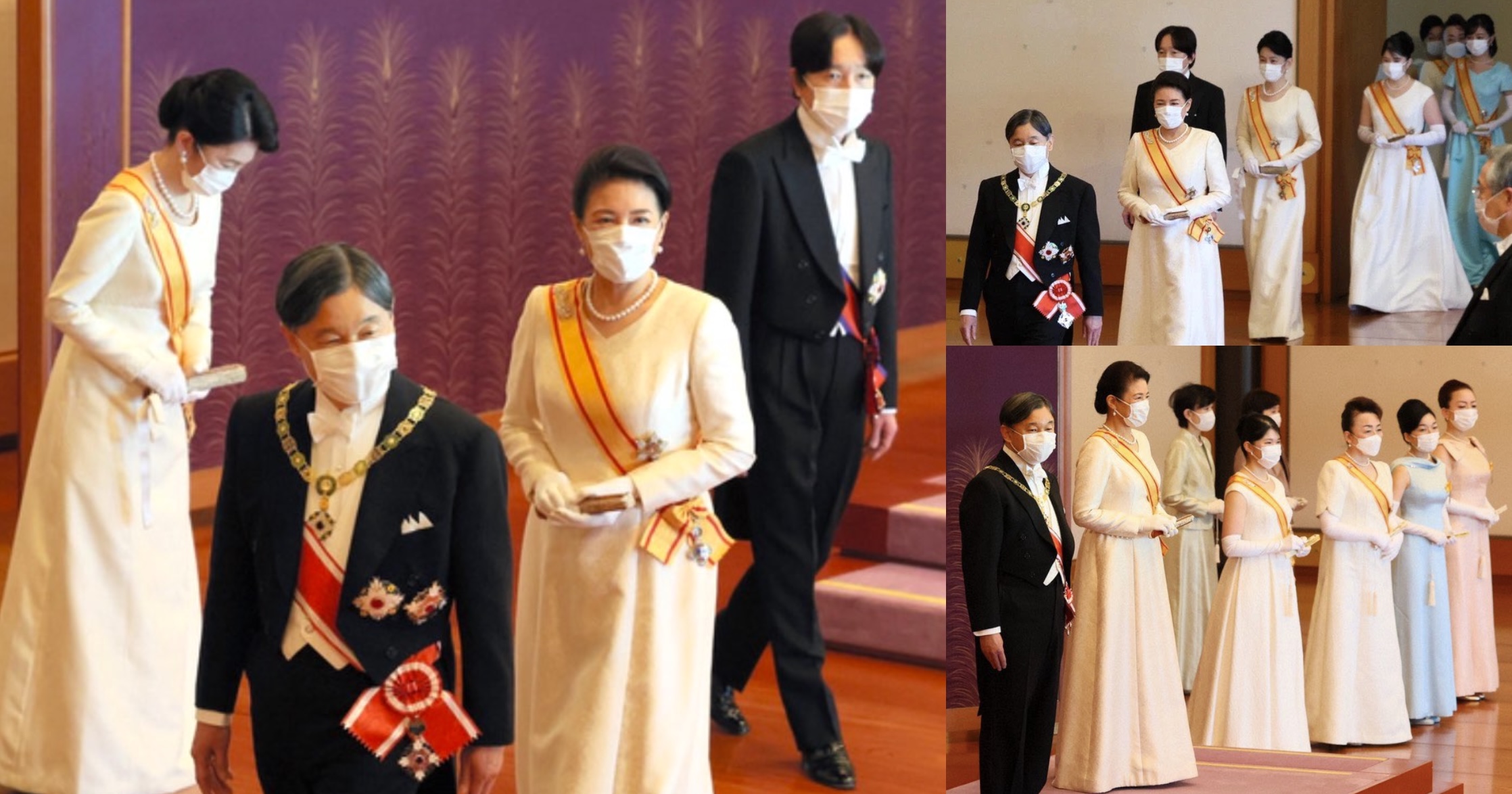 The Japanese Imperial Family presided over the Ceremony of New Year’s Celebration at the Imperial Palace in Tokyo on January 1st. This was the third New Year’s Reception of Emperor Naruhito’s Reign, but due to the ongoing pandemic, the Ceremonies were reduced from six to five, and only one-tenth, 262, people were received. The Imperial ladies refrained from wearing Tiaras due to the ‘severe situation of many people’.