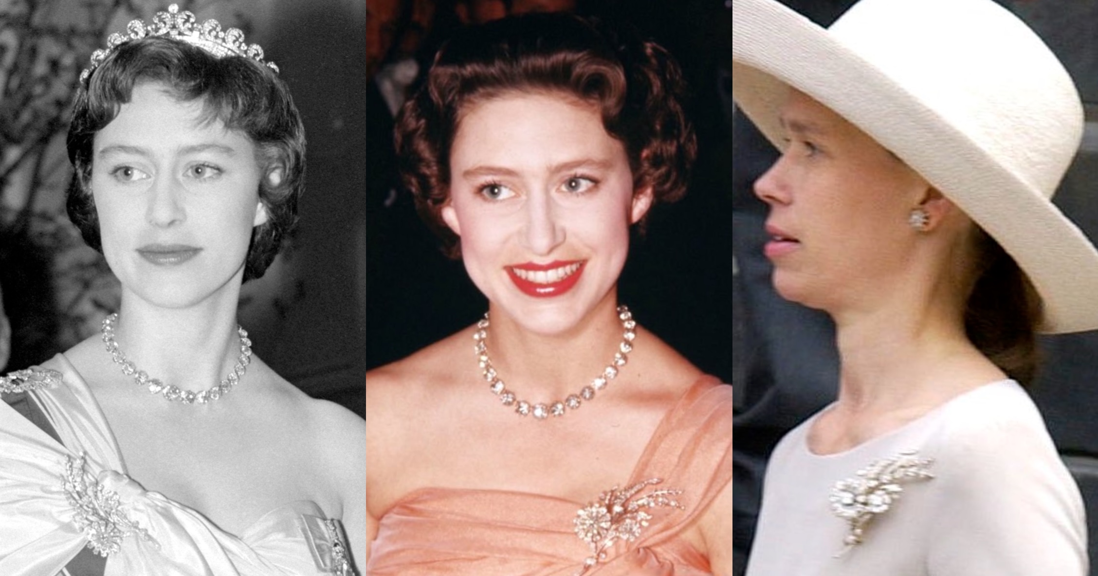 After Princess Margaret’s death in 2002, while many of her jewels were sold by her children at the famous 2006 Christie’s Auction, the Floral Spray Brooch was inherited by her only daughter, Lady Sarah, who wore it later that year with Princess Margaret’s Diamond Star Earrings for the Queen’s Golden Jubilee Service at St. Paul’s Cathedral.