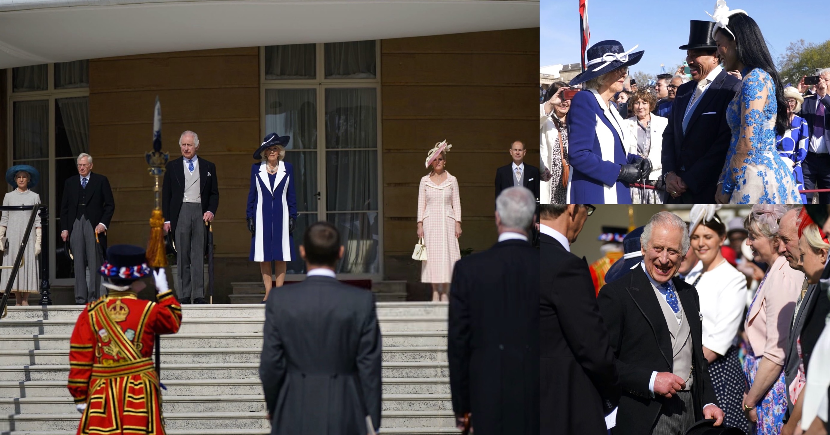 King Charles III and Queen Camilla were joined by the Duke and Duchess of Edinburgh, the Duke and Duchess of Gloucester, and the Duke of Kent as they hosted the first Garden Party in the spectacular gardens of Buckingham Palace. The members of the Royal Family stood for the national anthem before meeting some of the 8,000 guests while making their way towards the Royal Tea Tent, where they met further guests.