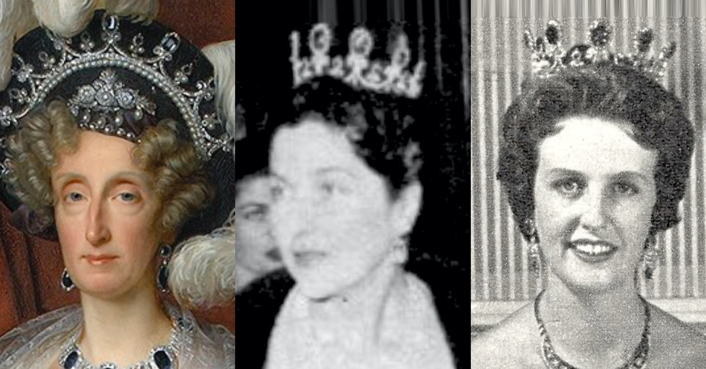 It wasn’t until the 1950s who the Orléans Sapphire and Pearl Tiara made a public reappearance, when it was worn by the Countess of Paris for the Wedding Gala of Prince Alexander of Yugoslavia and Princess Maria Pia of Savoy at the Palace Hotel of Estoril in 1955, which was her one and only appearance in the historic heirloom.