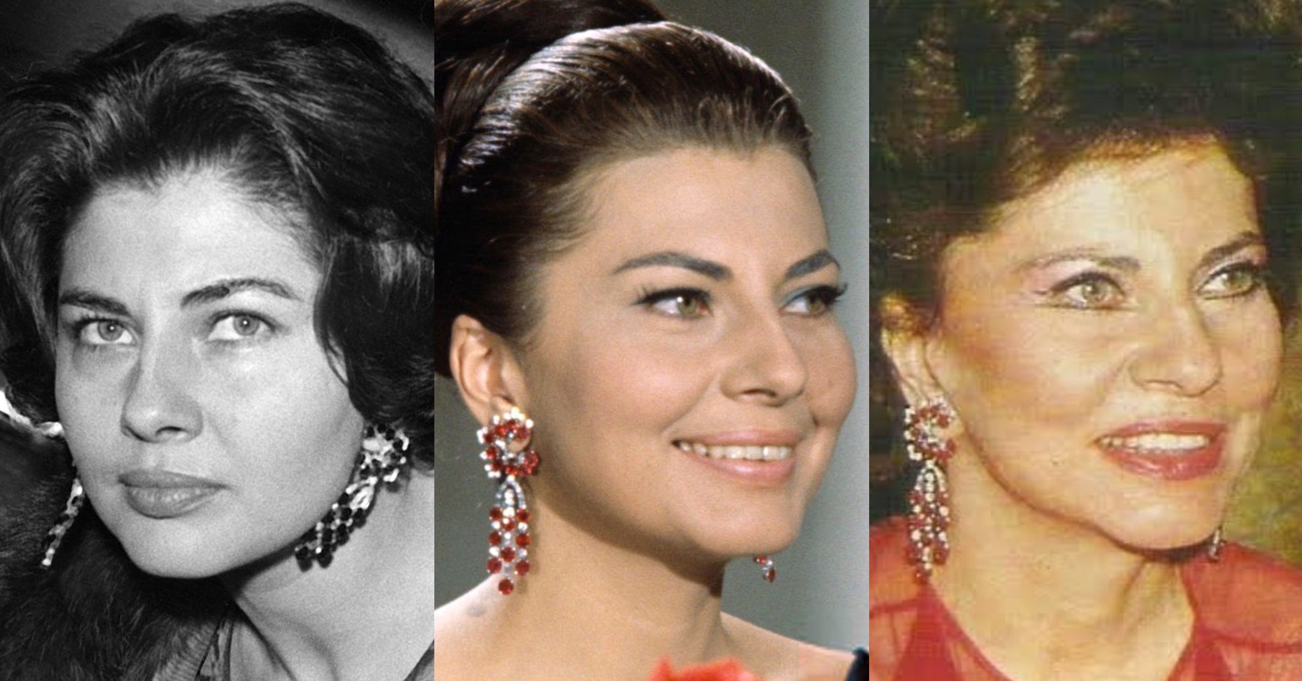 The upper portion of the earrings were worn for a Press Conference in 1963, to announce that Princess Soraya had been signed as an Actress by Italian film producer Dino De Laurentiis.