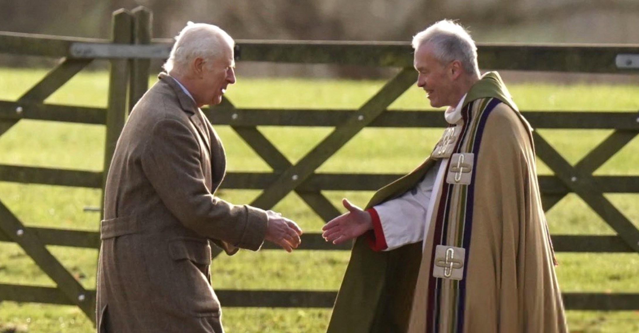 King Charles III was greeted by the Reverend Canon Dr Paul Williams as he arrived for the Sunday Service at the Church of St Mary Magdalene on the Sandringham Estate.