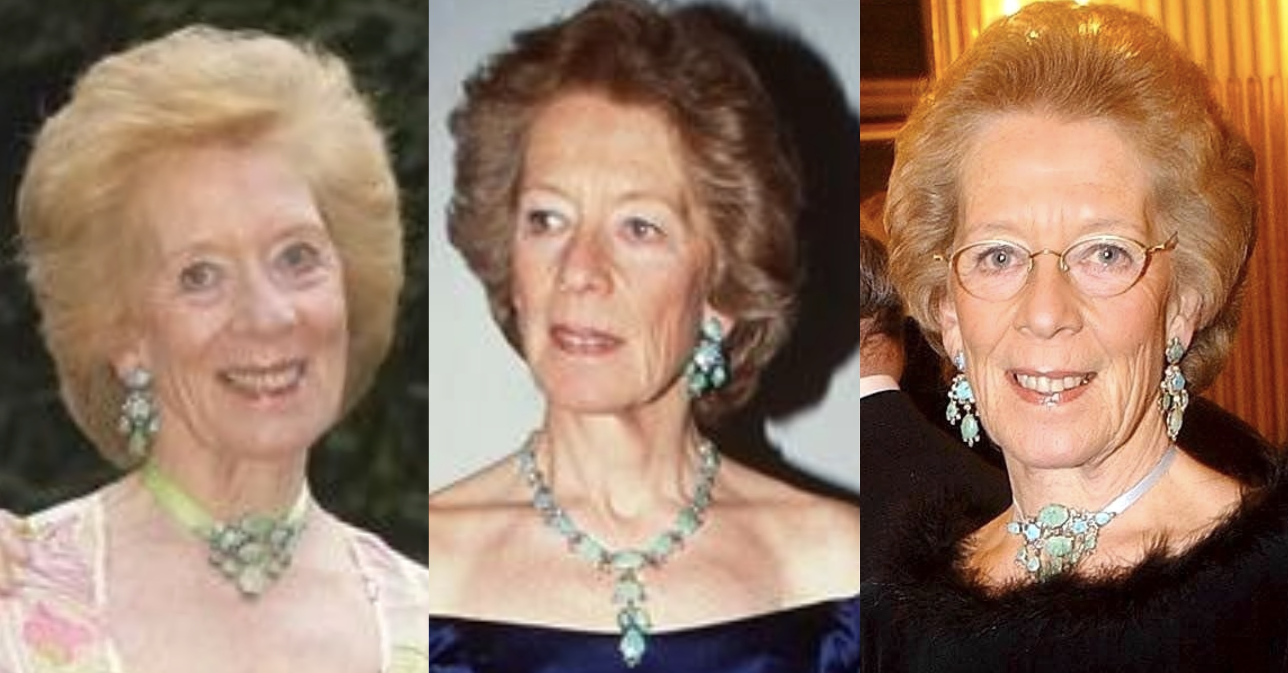 A few years later, Archduchess Anna-Gabriele wore the Turquoise Girandole Earrings with a large Turquoise Brooch as a Choker for Archduke Otto’s 90th Birthday Gala in Vienna in 2002.