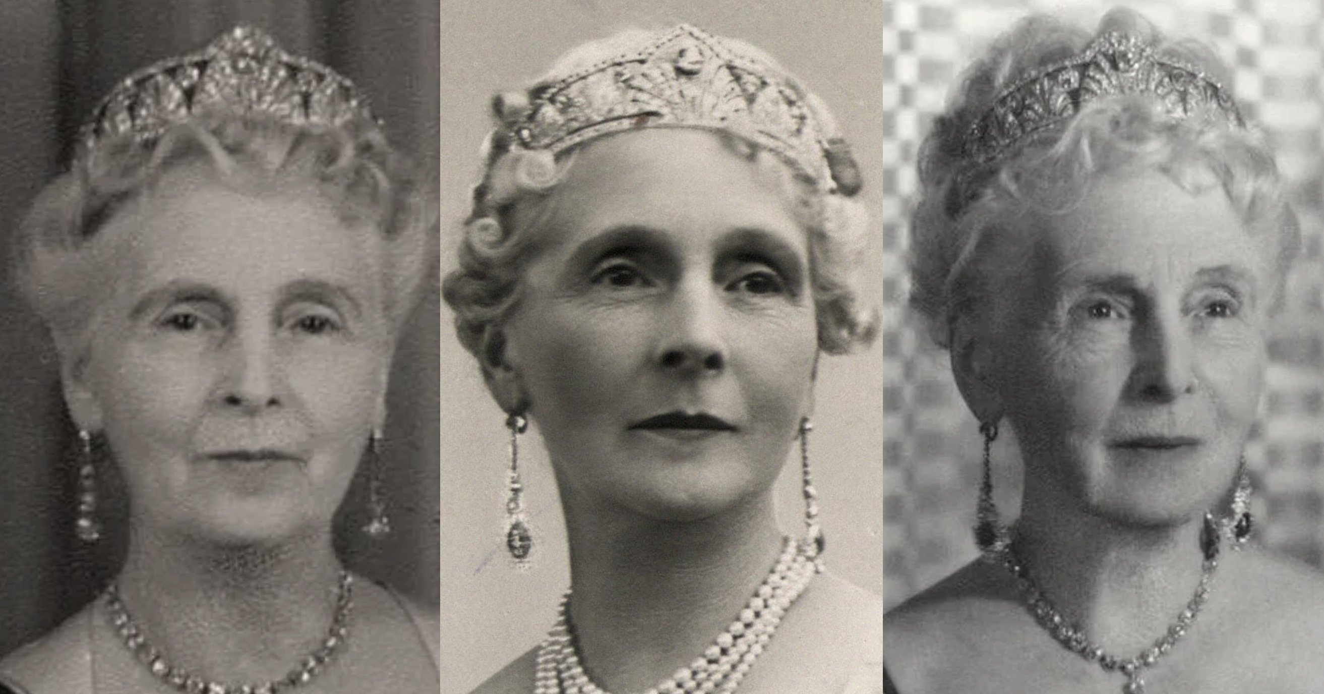 The Diamond Palmette Tiara was also worn by Princess Alice for the Wedding Gala of her cousin, Crown Princess Juliana of the Netherlands, and Prince Bernhard of Lippe-Biesterfeld in 1937, the Wedding Banquet of the Shah of Iran and Princess Fawzia of Egypt in Tehran in 1939 and also the French State Visit to Britain in 1939.