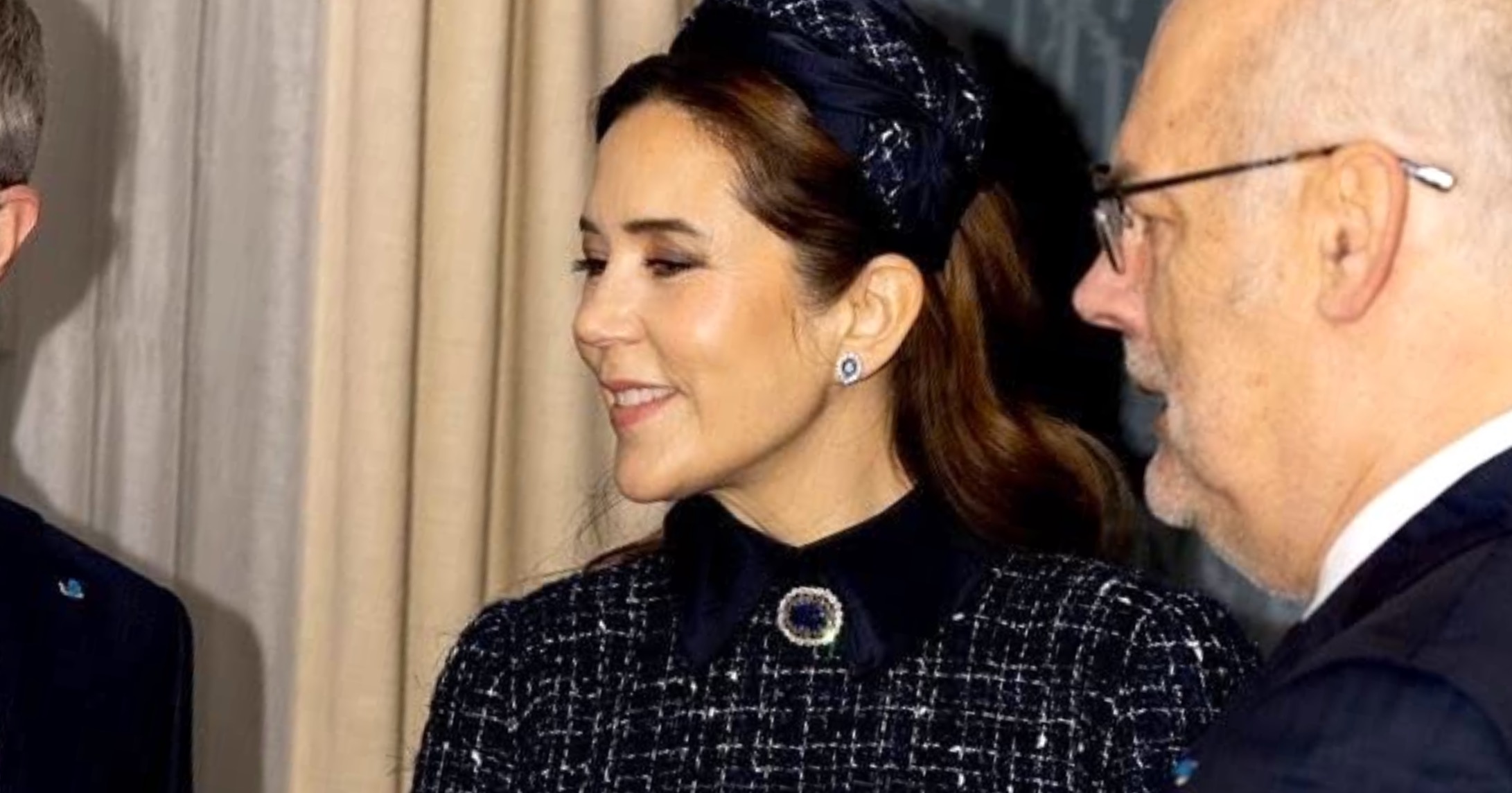 Queen Mary of Denmark has debuted another heirloom jewel from the Danish Royal Collection at the start of the Danish State Visit to Estonia today; the almost two centuries old Danish Flood Sapphire Brooch also known as the ‘Vandflodssafiren’.