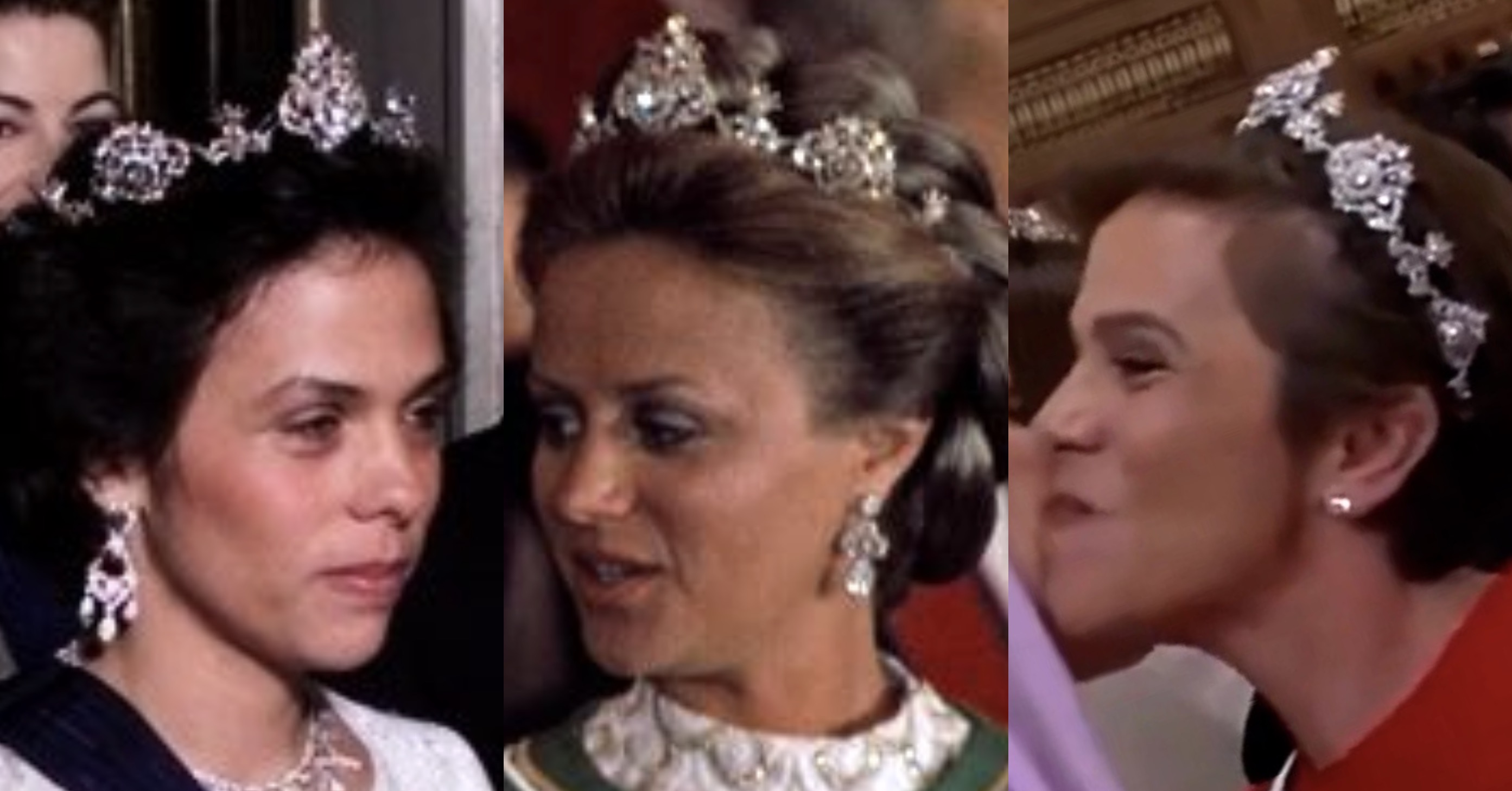 In 1964, Princess Muna notably wore the Diamond Scroll Tiara for the Wedding Ball of King Constantine of Greece and Princess Anne Marie of Denmark at the Royal Palace of Athens in 1964.
