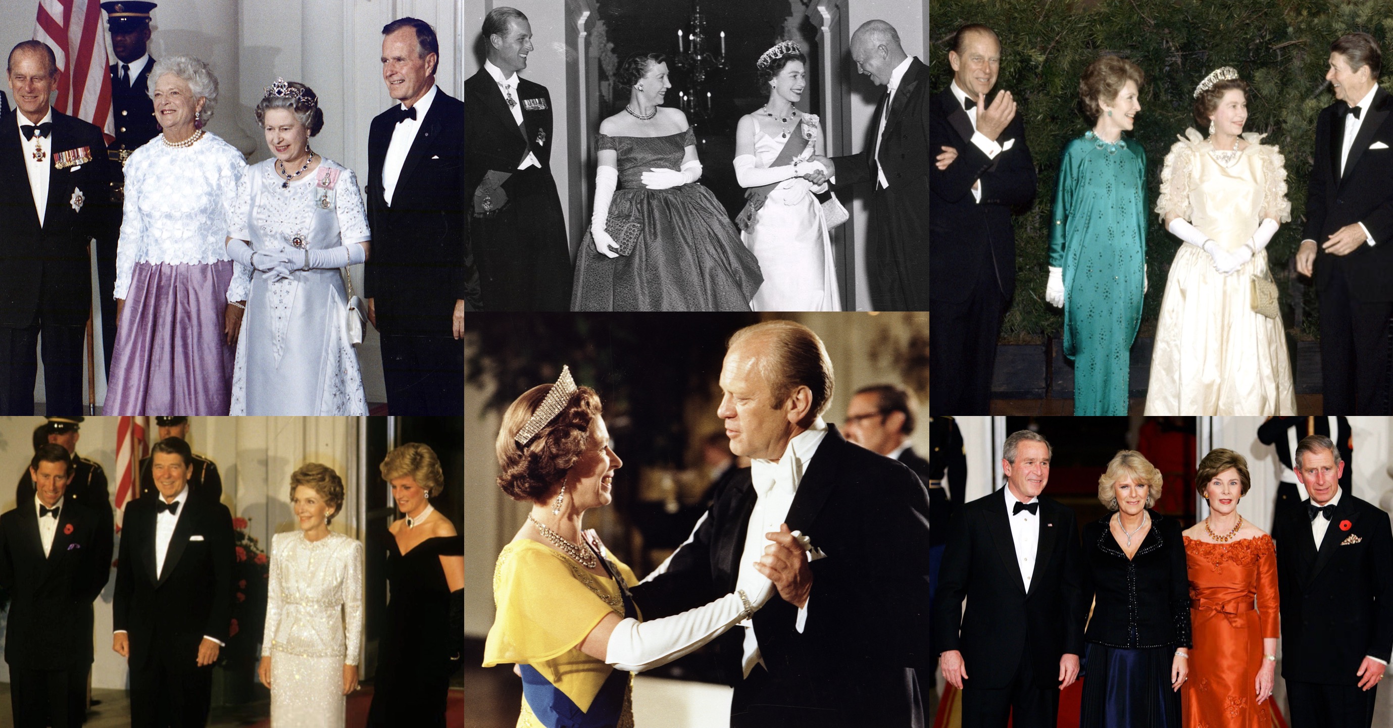 President Gerald Ford and First Lady Betty Ford hosted a State Dinner in honour of the Queen (wearing Queen Alexandra’s Kokoshnik Tiara) and Duke in the Rose Garden of the White House in 1976, followed by dancing in the East Room, during the Queen and Duke of Edinburgh’s State Visit to celebrate the bicentennial of the United States, which included a lavish Return Banquet at the British Embassy.