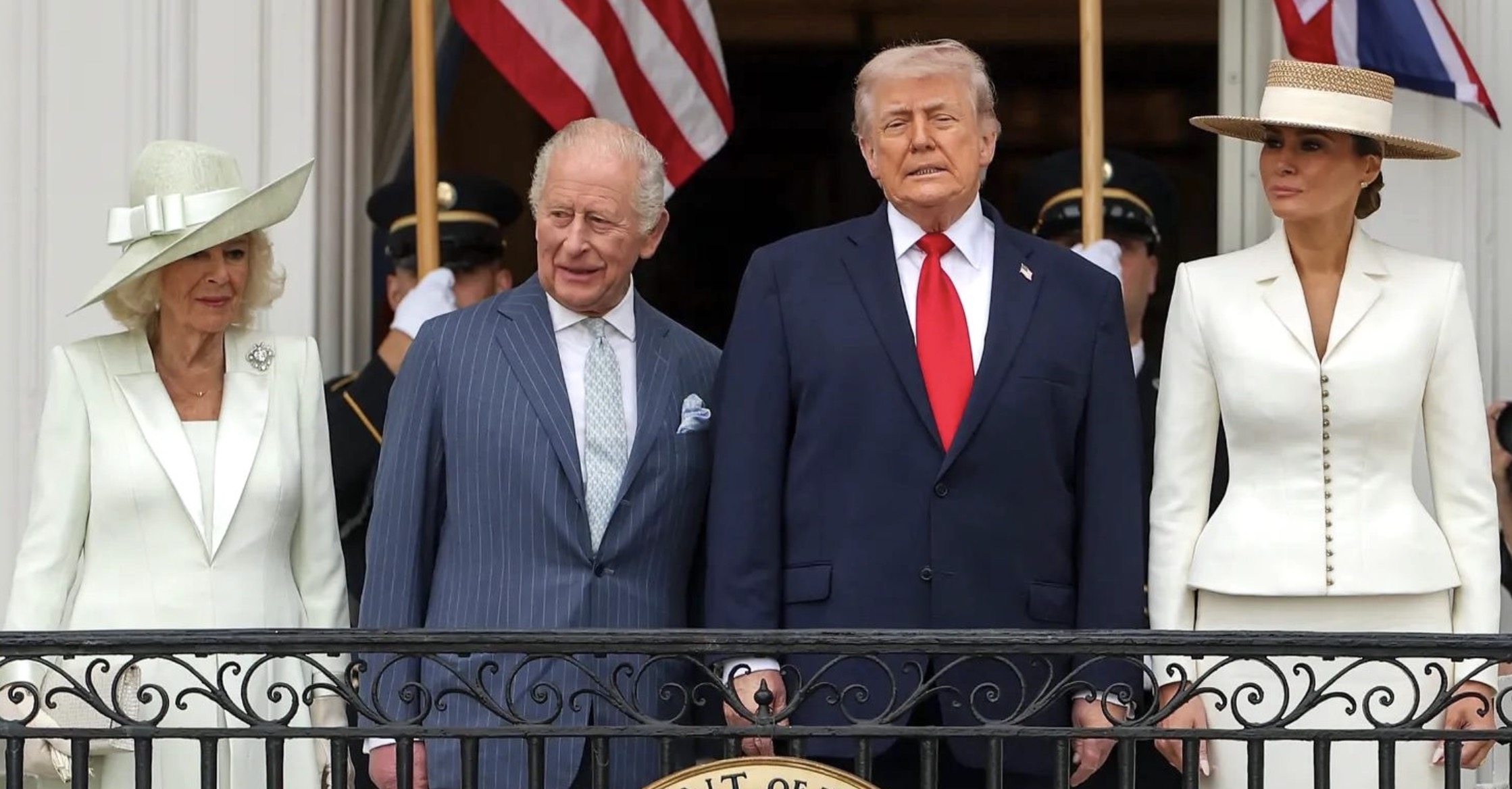 King Charles III and Queen Camilla were received by President Trump and the First Lady for a private tea at the White House, ahead of tomorrow’s Official Welcome.