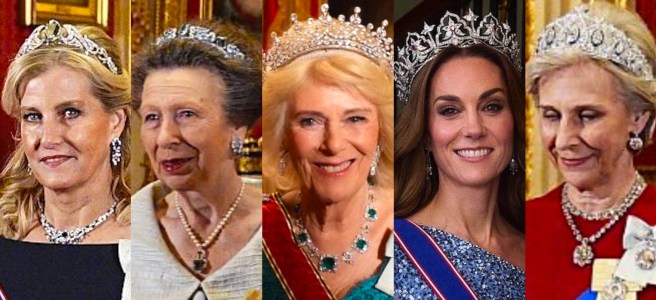 We got to see several spectacular Royal and Noble Tiaras worn at tonight’s State Banquet held by the British Royal Family for the German President and First Lady at Windsor Castle, on their State Visit to the United Kingdom this week.