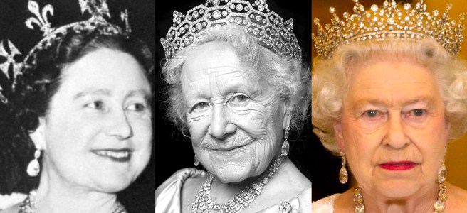 Tomorrow marks the 160th Anniversary of the Birth of Dame Margaret Greville, the Hon Mrs Greville The illegitimate daughter of a brewery millionaire, she married the son of a Baron, and became a noted Society Hostess, from her magnificent home at Polesden Lacey, getting close to the Queen Mother, to whom she left her enormous Jewellery Collection, so we are featuring several of her jewels, continuing with the Greville Diamond Peardrop Earrings!