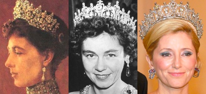 Given to a German Princess when she married the Crown Prince of Greece, this impressive diamond tiara was a favourite of her great-niece/daughter-in-law, Queen Frederica of Greece, and after remaining hidden for decades, it made a surprise reappearance on the current Greek Crown Princess! Continue reading