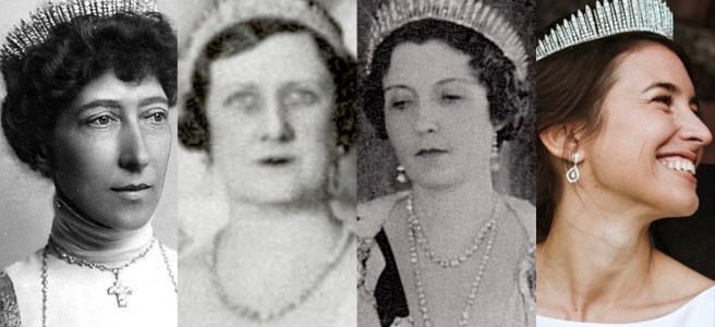 Today’s glittering tiara belongs to the members of the family who ruled the German Grand Duchy of Baden until 1918. However, they have managed to keep their Sunburst Tiara and their Ruby Wreath Tiara. The Sunburst Tiara was worn by the Duke of Edinburgh’s sister, an Austrian Archduchess, and brides marrying into the Baden family in recent years. Continue reading